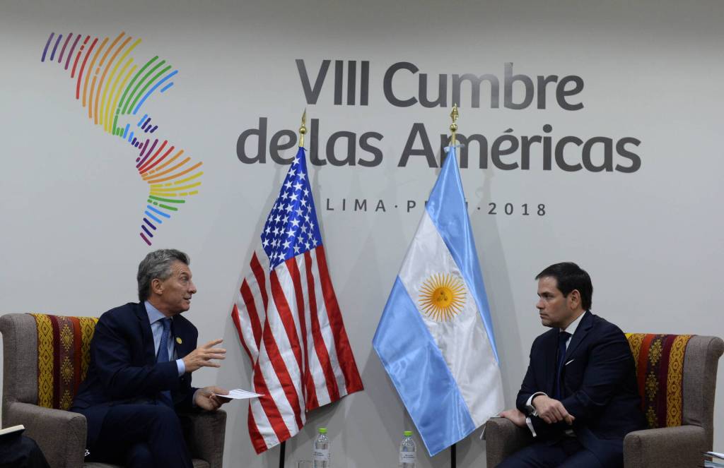Un mes más tarde, en Perú durante la VIII Cumbre de las Américas, el senador norteamericano se reunió con el presidente argentino. Rubio tenía claro que la relación bilateral con Argentina implicaba un ingreso al continente y la posibilidad de un cambio profundo en las reglas de la Organización Mundial del Comercio para sancionar mejor y más rápido a China; celebró el Grupo de Lima y el aislamiento al que se sometía a Venezuela.