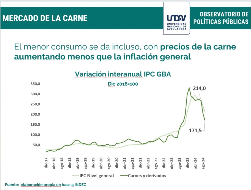 Esta baja del consumo se dio incluso en un contexto en donde los precios de la carne, aumentaron menos que el nivel general de precios, según los datos oficiales del gobierno libertario.