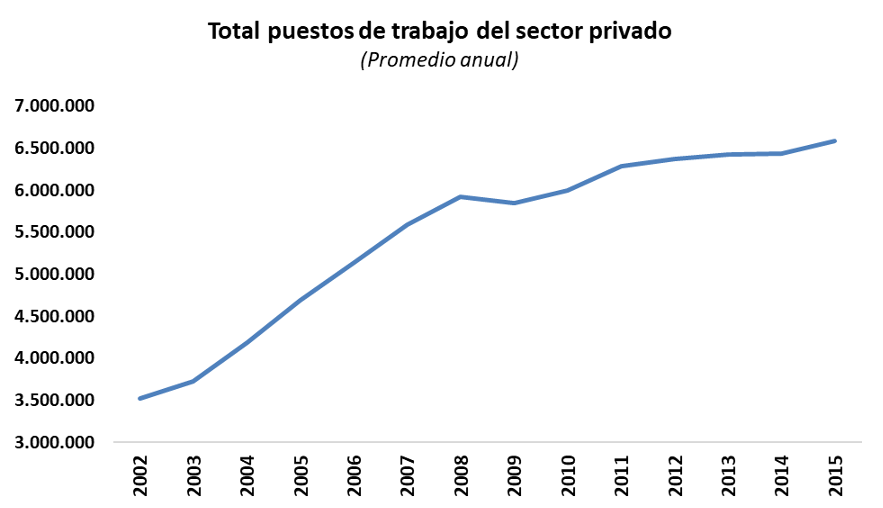 Uno de los pilares fundamentales de este modelo fue la recuperación del empleo formal, acompañada por una política de ingresos que permitió recomponer el salario real y reducir de forma sostenida la pobreza y la desigualdad. Entre 2003 y 2015 se crearon alrededor de tres millones de puestos de trabajo en el sector privado, y la tasa de desempleo general descendió del 21,5 % en 2002 al 6 % en 2015. De este modo, los gobiernos de Néstor y Cristina constituyeron las gestiones que más puestos laborales privados generaron por año en la historia argentina.