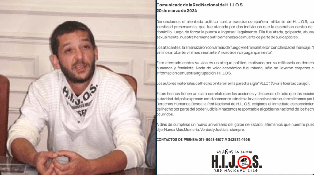En medio del amplio repudio que generó el brutal ataque y abuso a una militante de H.I.J.O.S, ocurrido en la ciudad de Rosario, el referente de la agrupación de esa ciudad, Agustín Cetrangolo, calificó lo ocurrido como “un atentado político” y responsabilizó al gobierno del presidente Javier Milei porque, según señaló, “cuando se siembra violencia, se cosecha violencia”.