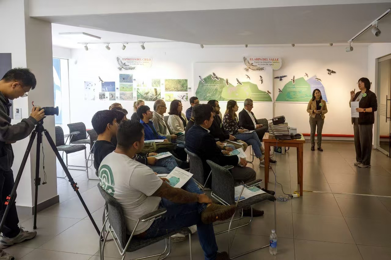 La apertura de la muestra fotográfica se realizó en el marco del lanzamiento del Programa de Observación de la Naturaleza para Jóvenes de China y América Latina del Pacto Terrestre y Marítimo, en el que participan representantes de ONG vinculadas al medio ambiente de Perú, Chile y Argentina.