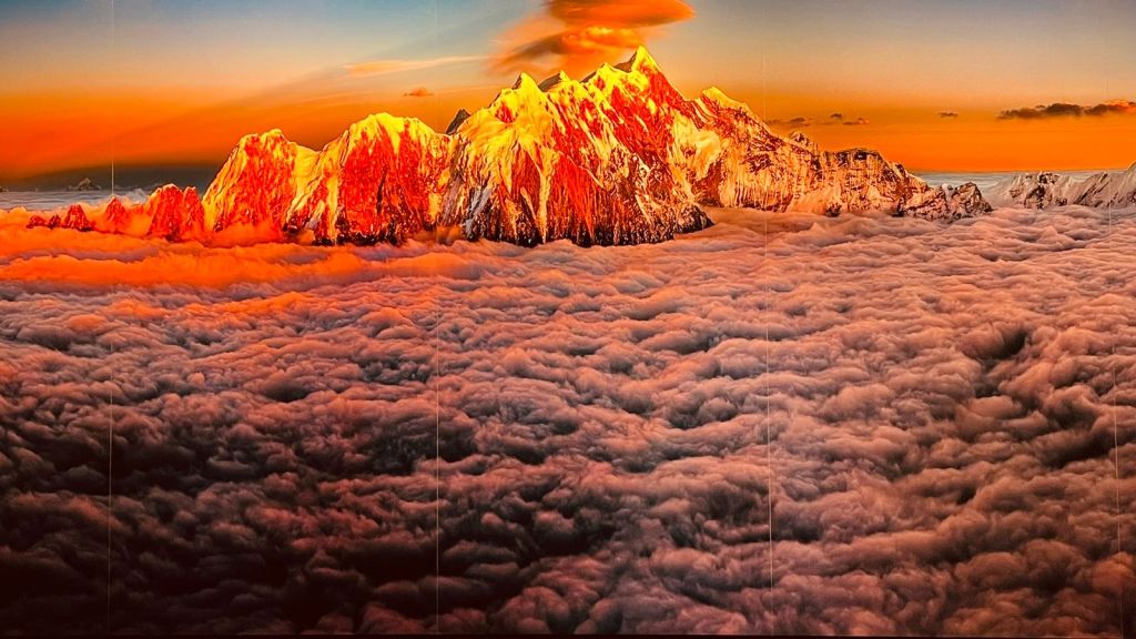 A partir de esta premisa, el Museo de Arte Luo Hong impacta con una serie de gigantografías de lo que podría llamarse el “techo del mundo”, es decir, la cima de algunos de los picos y cadenas montañosas más espectaculares del planeta. Las imágenes, tomadas desde helicópteros, van desde el Himalaya a la montaña sagrada de Daocheng Yading, la Namcha Barwa, el Meili Snow Peak, el pico Kawagebo y el Fitz Roy, entre otras maravillas.