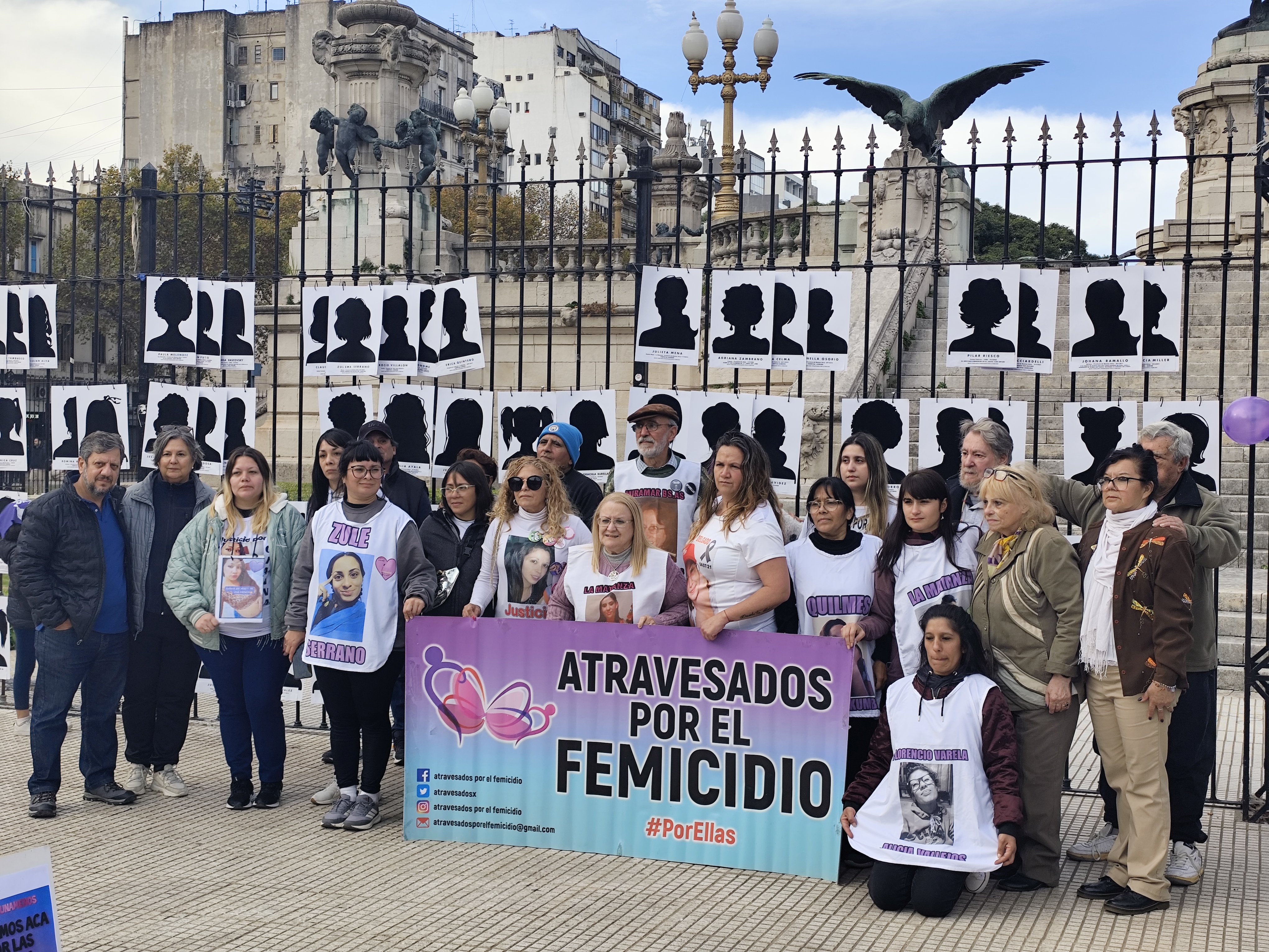 Atravesadxs por el Femicidio armó una intervención fotográfica con las siluetas de 175 mujeres, que llevaban los nombres de sus hermanas, hijas y madres. “Son todas siluetas de mujeres diferentes, como eran nuestras chicas, que eran todas distintas, pero todas tuvieron algo en común, que fue la forma en la que murieron. Fue por un femicidio”, explicó Marcela Morera, mamá de Julieta Mena, asesinada en 2015, y una de las fundadoras de la organización.