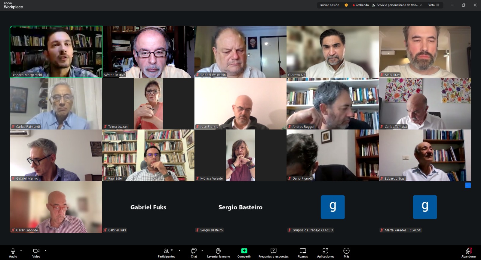 El evento se hizo a través de la plataforma del Consejo Latinoamericano de Ciencias Sociales y se siguió al mismo tiempo por su canal de Youtube, donde fue seguido también por investigadores de FLACSO, dirigente del Grupo Puebla y otras organizaciones, activistas y comunicadores. La actividad contó, además, con el acompañamiento del IEALC de la Facultad de Ciencias Sociales de la UBA, el programa Hilando Fino de la Universidad Nacional Arturo Jauretche y otros grupos.